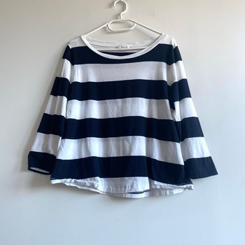 COS Womens Navy White Striped Top Boxy Fit Cotton Size M 3/4 Sleeve Casual