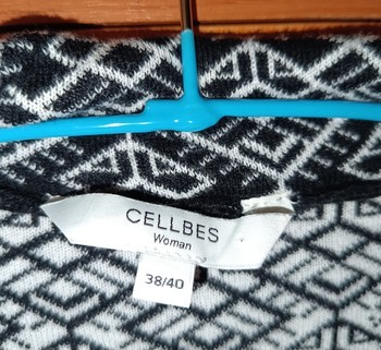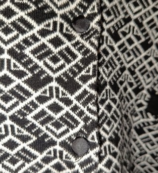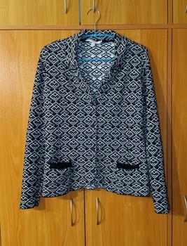 Black and white patterned cardigan with button closure. Made of 100% cotton. Size 38/40.
