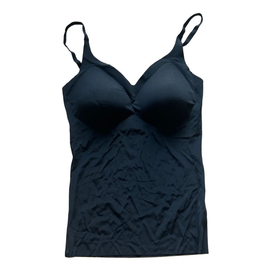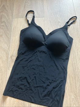 Black padded undershirt with adjustable straps. Size S, made of polyamide and elastane. Seamless and shaping.