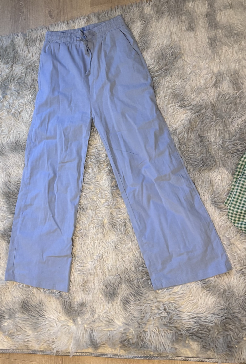 Very high quality,Light blue trousers with a wide-leg fit and an elasticated drawstring waistband. Very