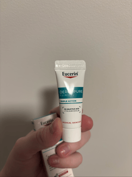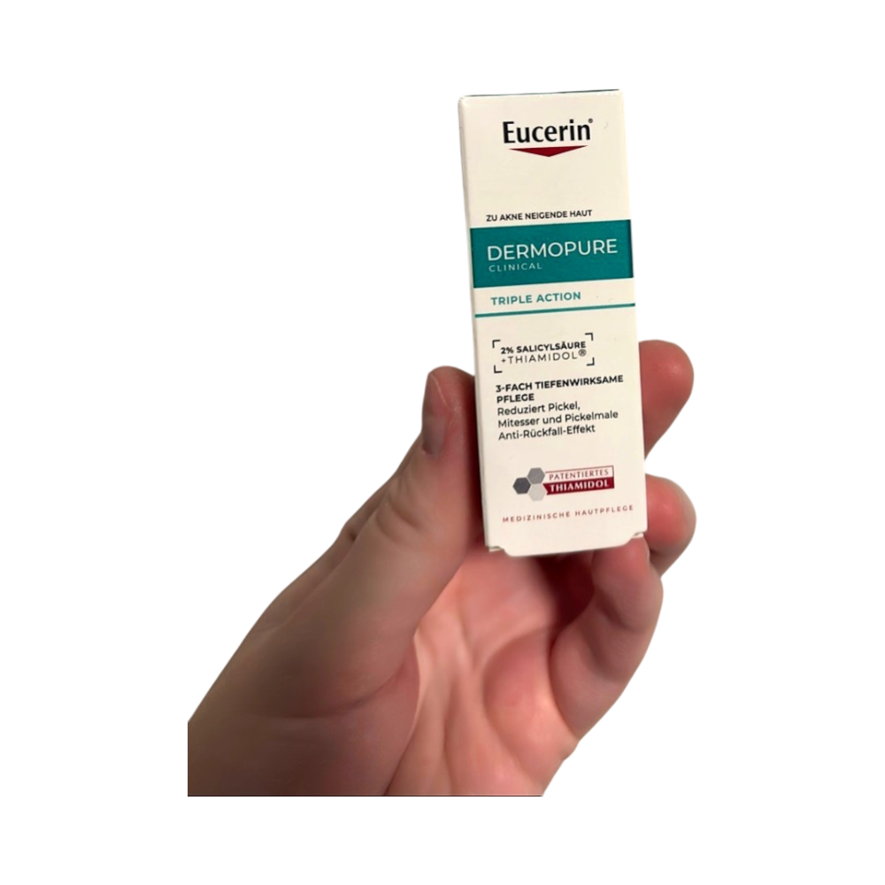 Eucerin Dermopure Triple Action Fluid, 7 ml, new. It contains 2% Salicylic Acid and Thiamidol (may sting, tested on a different tube). Expiration date 12/2027. Could probably be used as a serum.