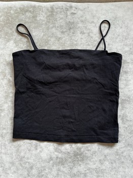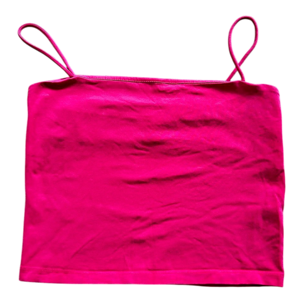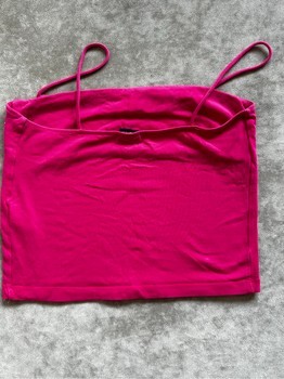 Two camisole tops with thin straps. One in bright pink, one in black. Size M.