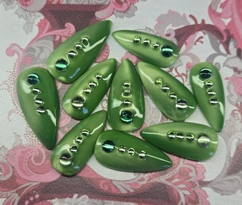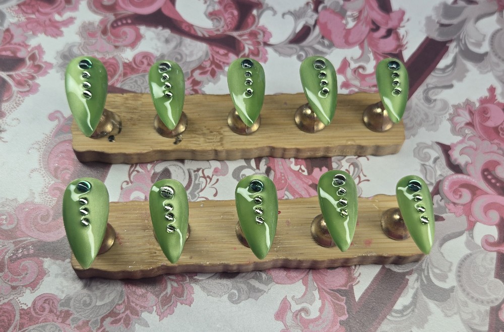 Spring cat eye set with green nail rhinestones 💚💎 (#126)