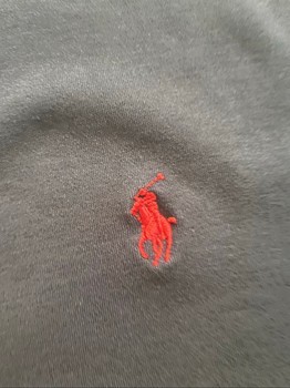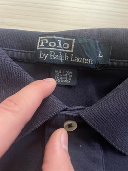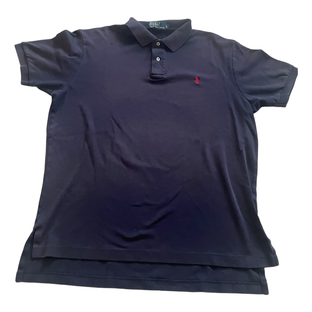 Classic navy blue polo shirt by Polo by Ralph Lauren featuring a red logo embroidery. Size L.