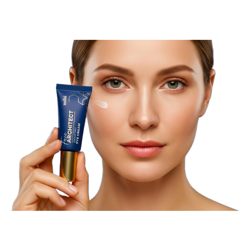 Mihi Face Architect exolifting eye cream, 15 ml. Blue tube with gold cap.