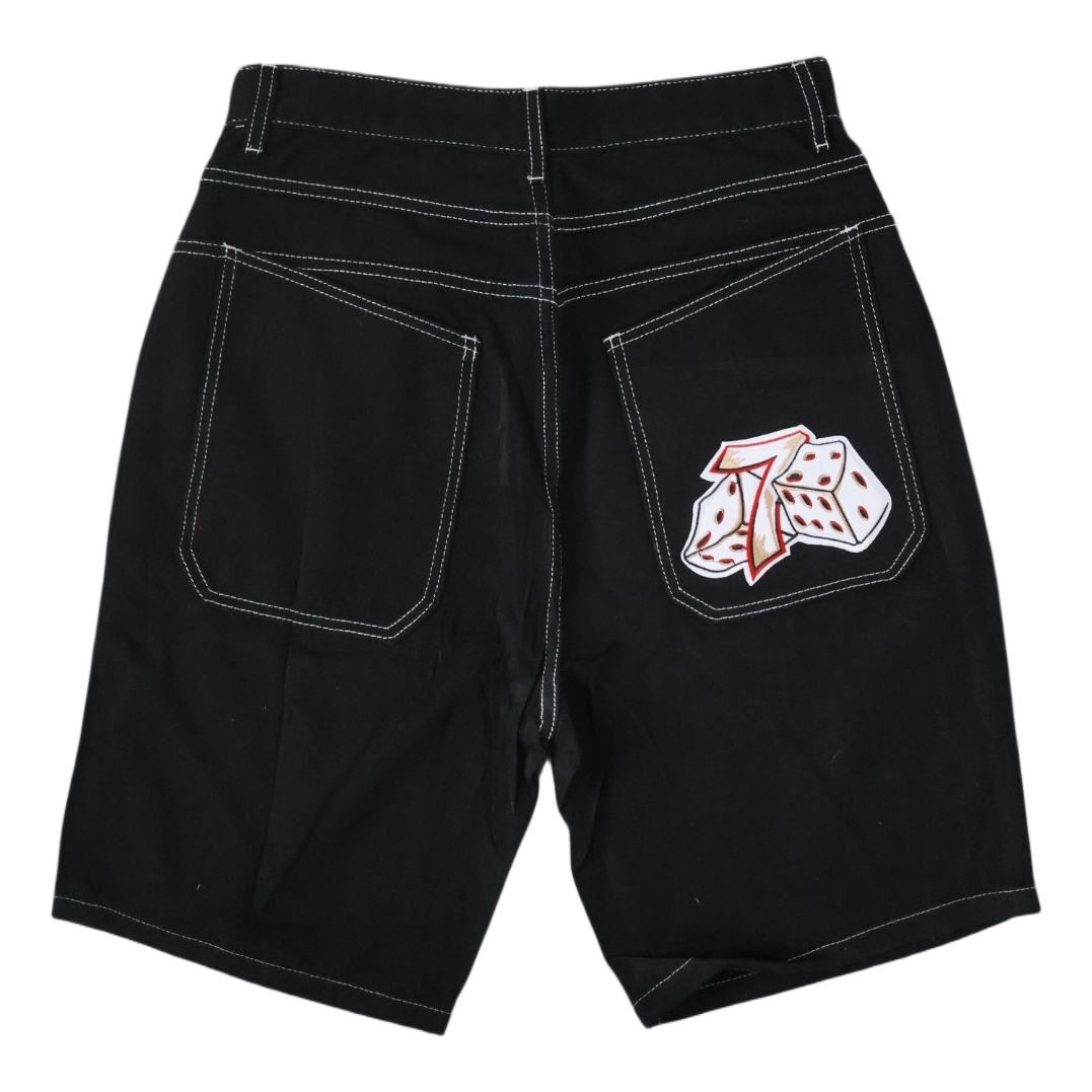 For sale very sought-after JNCO Jeans denim shorts. The shorts have the brand-typical really wide leg (baggy fit) and beautiful embroidered logo details on the back pocket and on the leg. Perfect condition, These are hard to find! Size: M Measurements: Waist circumference 80 cm, total length 59 cm. Condition: Excellent Model: Baggy / Wide leg Other: There are no pets in the household. Fast shipping!