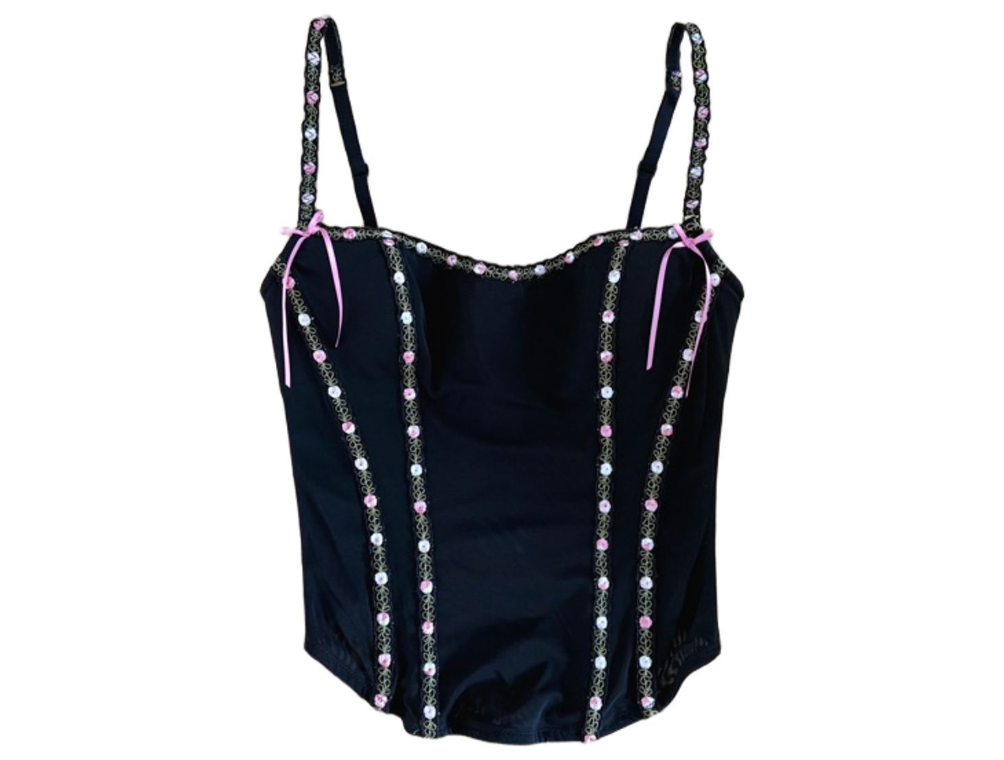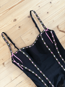 Black corset top with floral trim