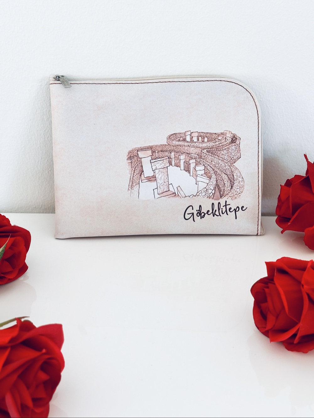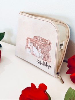 Light toiletry bag, which has a Göbeklitepe-themed image. The zipper has a Turkish Airlines detail.