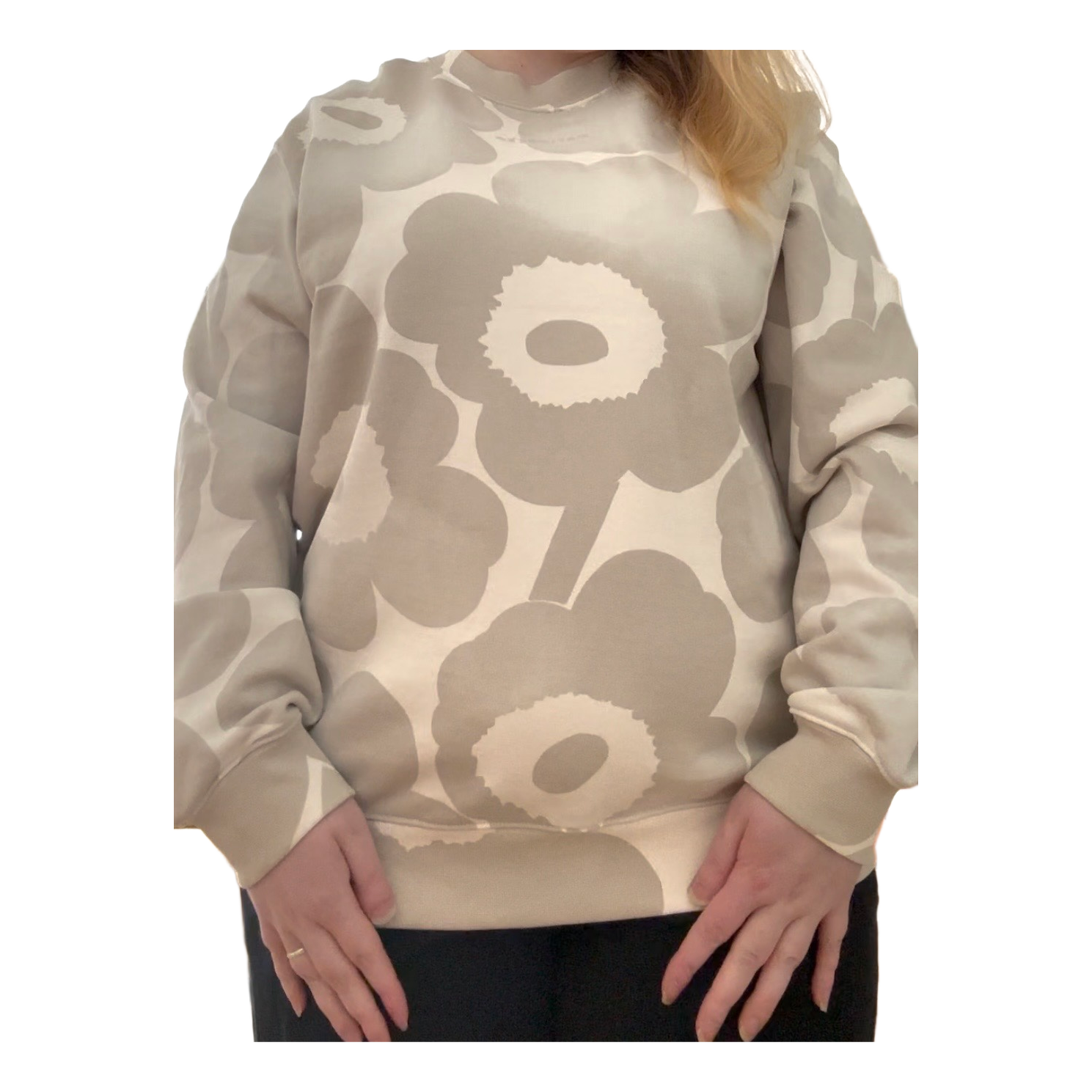 Marimekko Loisto Akvarelli Unikko sweatshirt. Size L. Unisex model. Armpit-to-armpit approx. 61 cm and shoulder-to-hem approx. 78 cm. Only worn once. The Unikko prints are intentionally uneven in shade, this is normal. RRP €220.