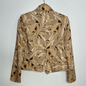 Elegant feather print linen/flax blend blazer/jacket in size 2 (aprox. S / M). Good condition, the front pockets are still sewn shut.