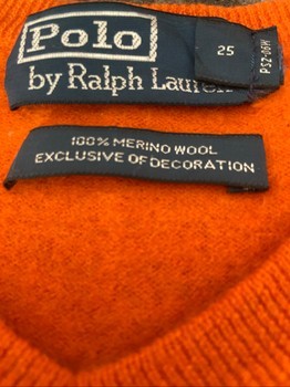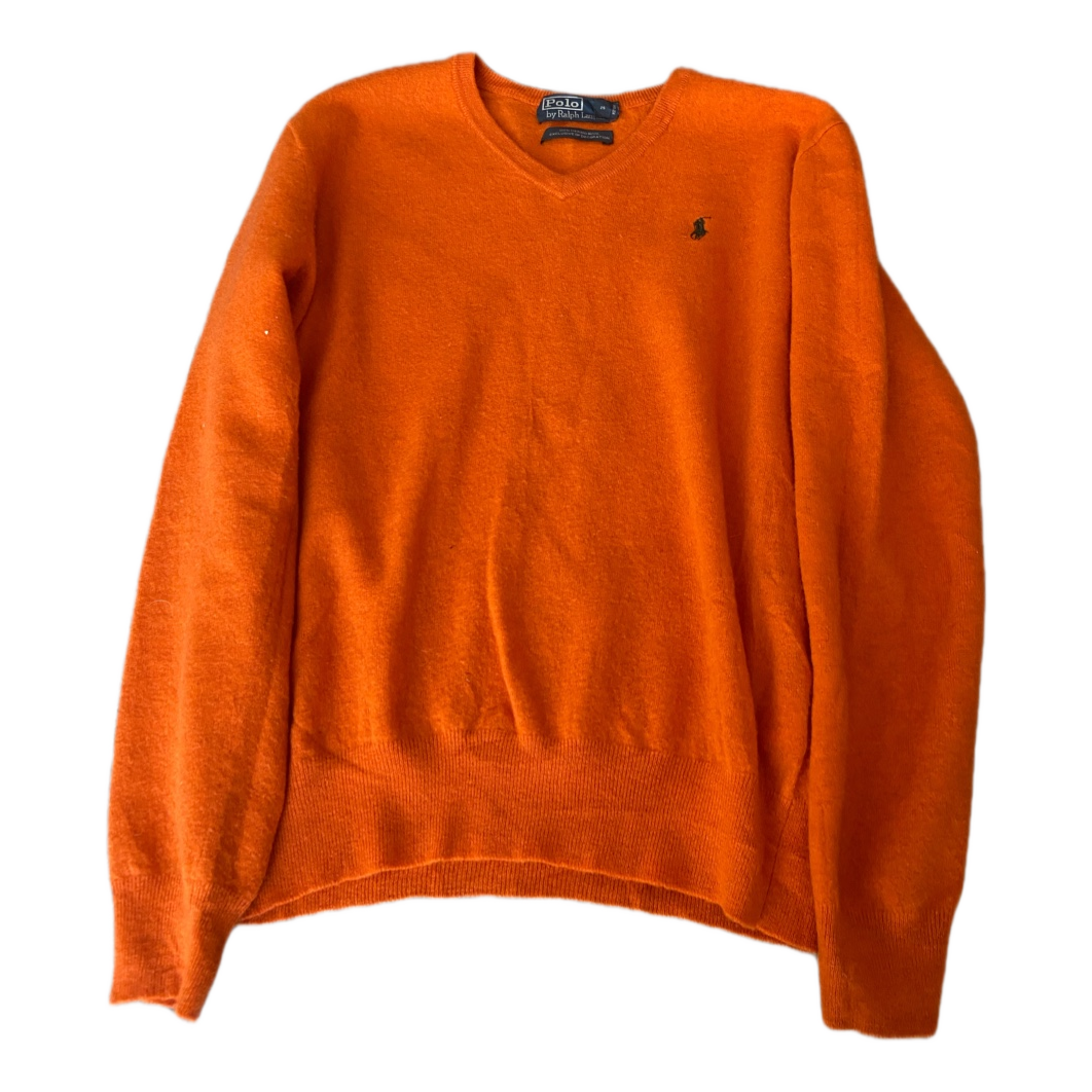V-neck sweater by Polo by Ralph Lauren in bright orange. Crafted from 100% merino wool.