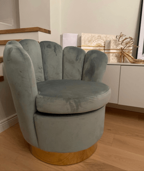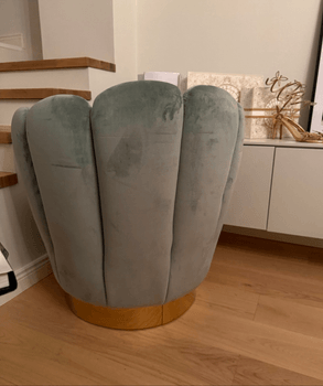 Stylish light green or turquoise chair, with soft upholstery and a golden leg. Suitable for decoration or sitting. Pickup from Mellunmäki, Helsinki