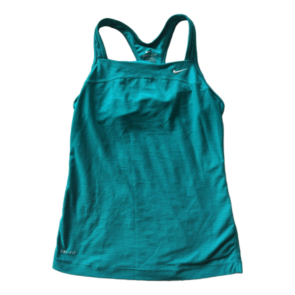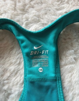 Turkoosi Nike Dri-Fit urheilutoppi. Koko XS. Hieman nukkaantunut, näkyy kuvassa.