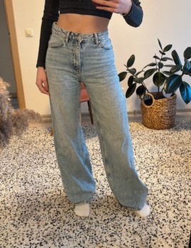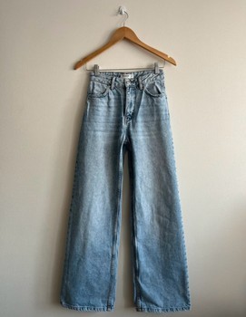 High-waisted wide leg jeans in light blue wash. Made of denim. Size 34