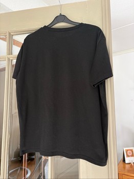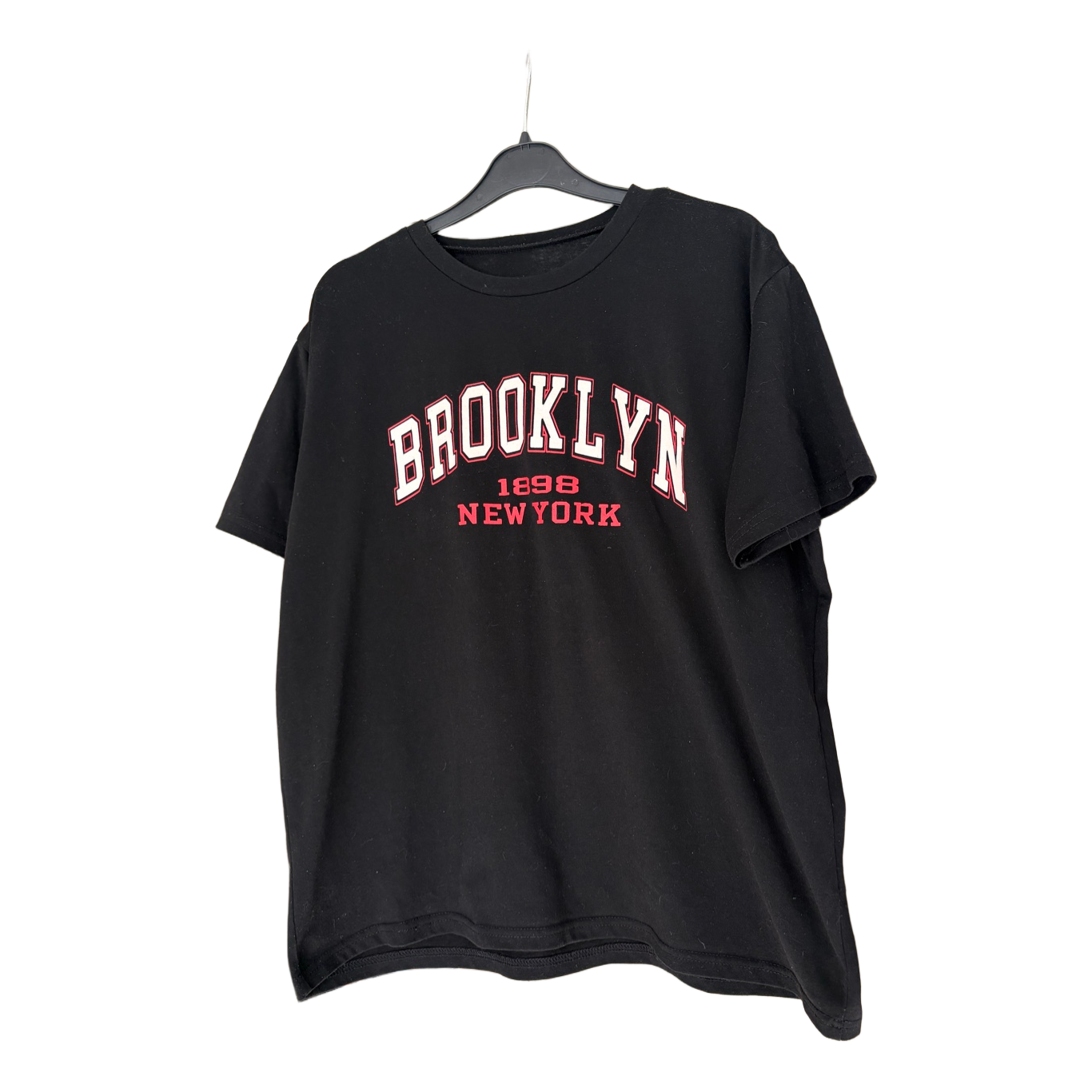 Shein black printed shirt with red and white print. For the brand, good quality, has been used by me a lot. Nevertheless in good condition, nothing to complain about. Size S, oversize model.