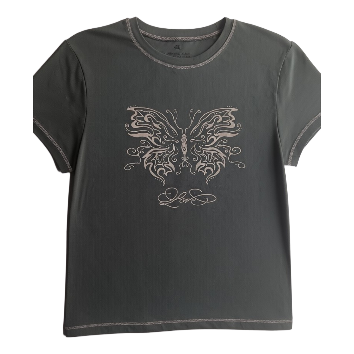Green butterfly-patterned t-shirt