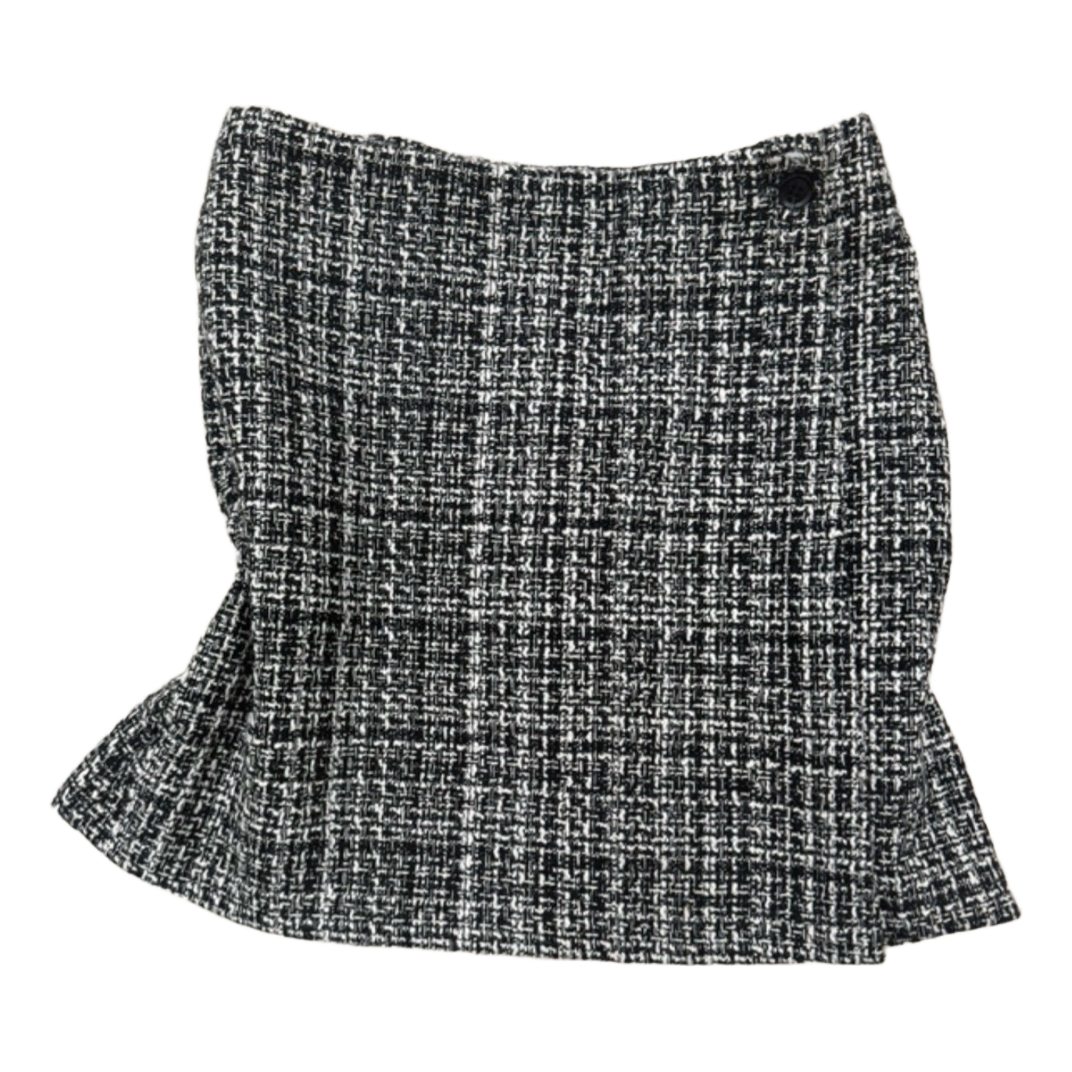 Black and white tweed mini skirt with a button closure. Size 38.