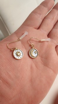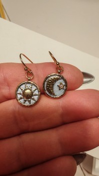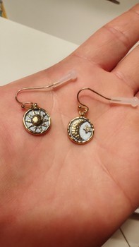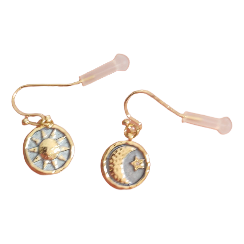 Gold-toned sun- and moon-themed earrings.
