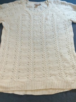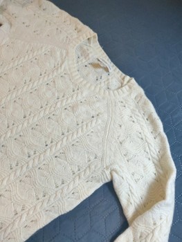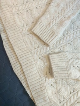 Lovely natural white women's knit, with a beautiful combination of cable knit and openwork (pointelle).