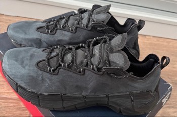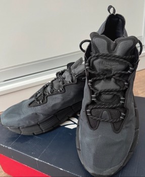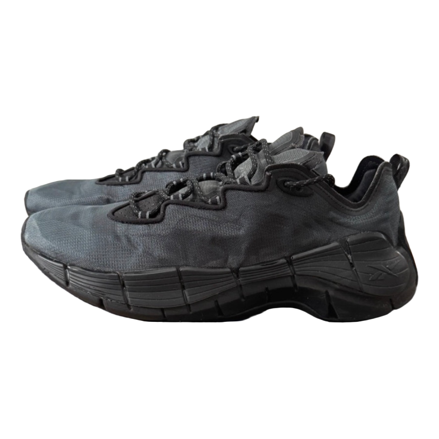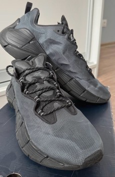 Black "Reebok Zig Kinetica II" running shoes. With signature "Zig Energy" soles. Size 45. Worn a few times, no defects. Needs a bit of cleaning.