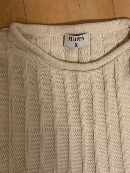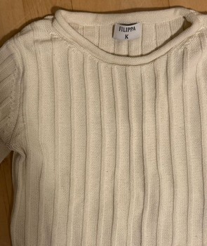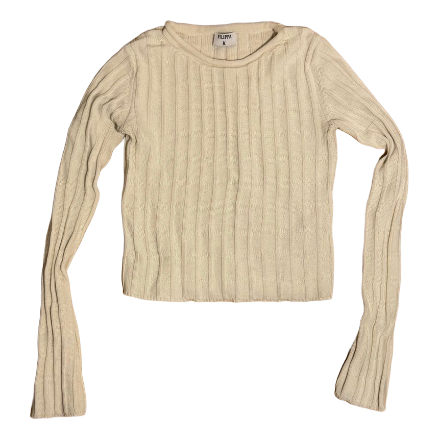 Cream-white long-sleeved knit sweater. Crop model. XS-S