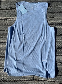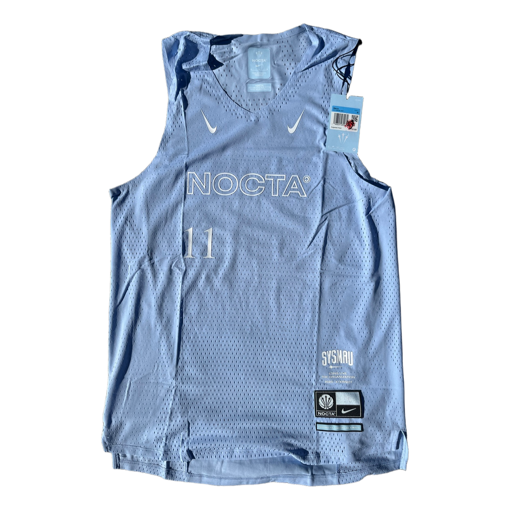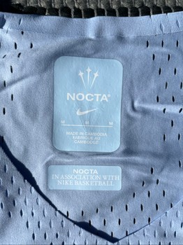 Light blue Nike Nocta basketball jersey with graphic print. Mesh fabric construction. New with tags. Size M.