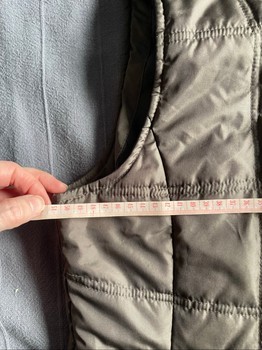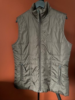 Brown quilted vest with a zip-up closure and side pockets. Size 40.