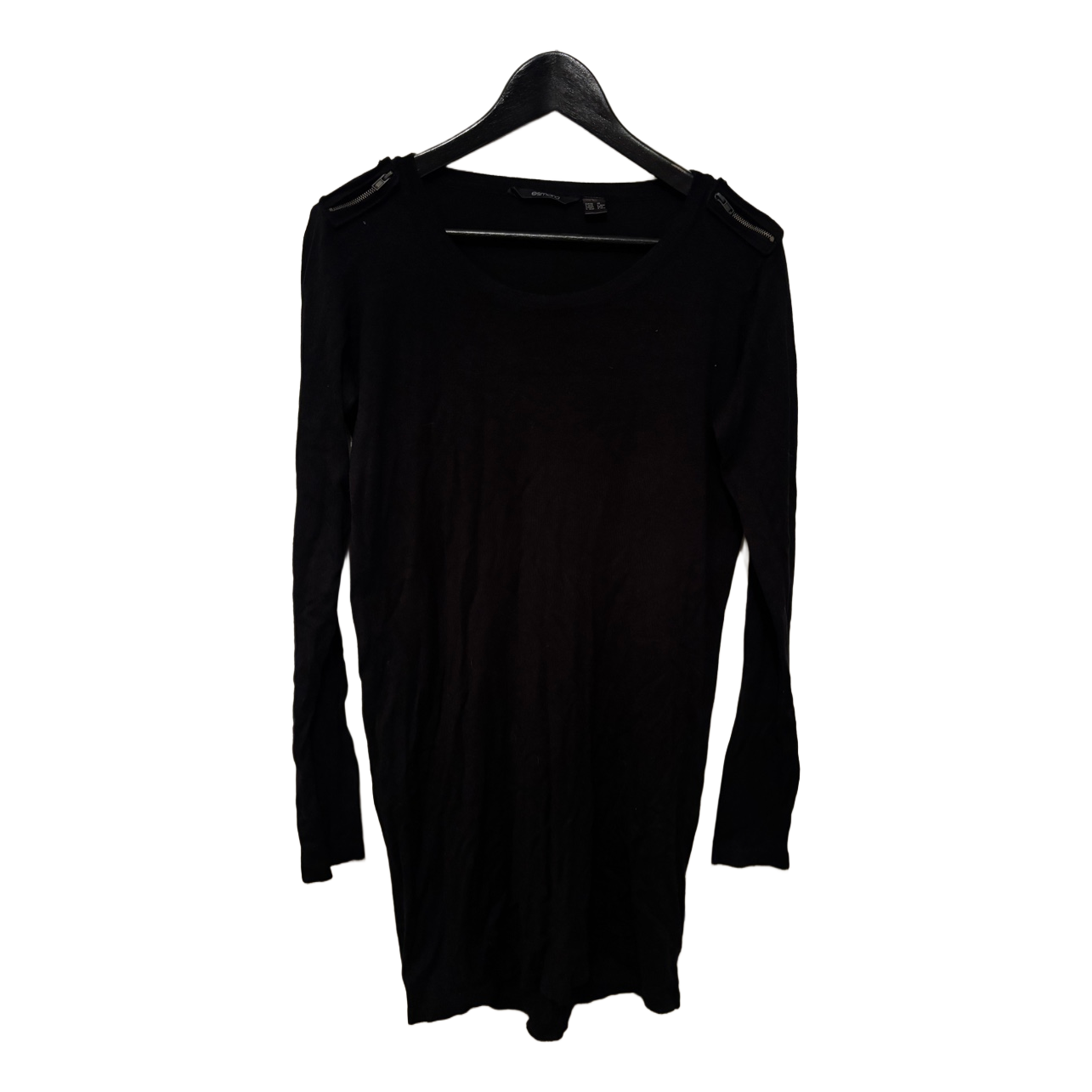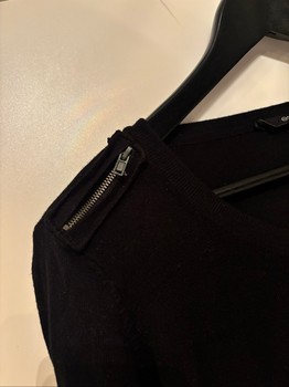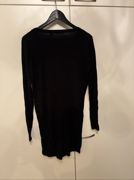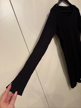 Black long-sleeved shirt with shoulder details. Size 36/38, material viscose and polyamide.
