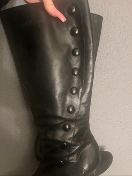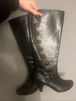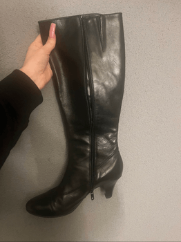 Stylish leather boots with heels, lightly used. The size reads 5 but I would say it corresponds to size 37
