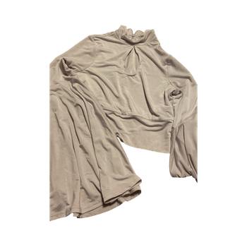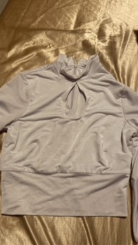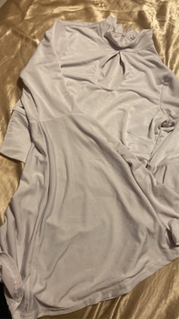 Shirt suits well for parties. Long-sleeved shirt with an open neckline. I am not sure of the size but fits XS–S (I am S).
