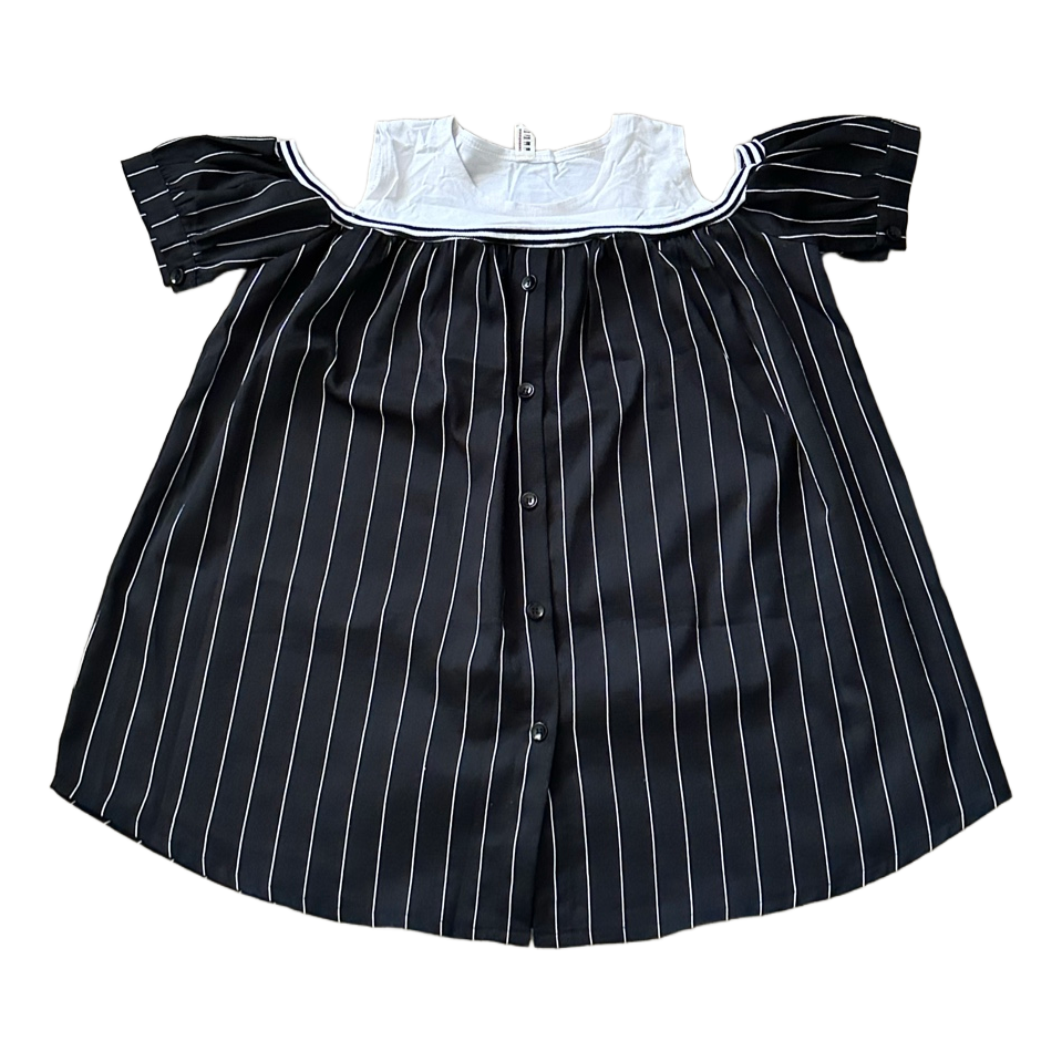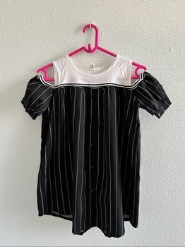 Half open shoulder short sleeve shirt with button up style. There are button closure on the sleeve.