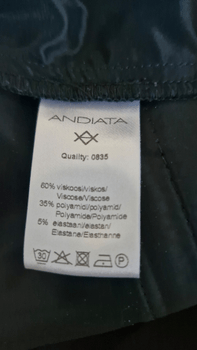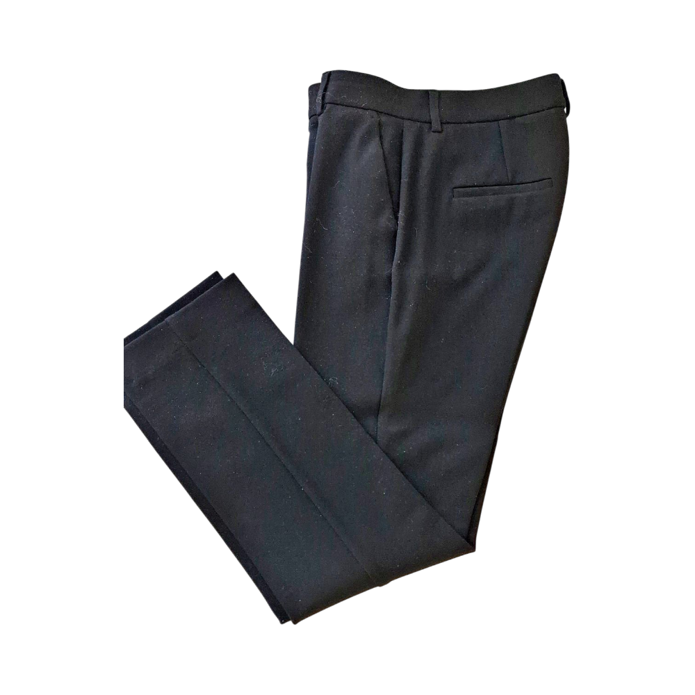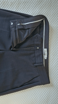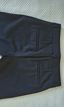 Black women's trousers, with belt loops and back pockets. Material: 60% viscose, 35% polyamide, 5% elastane. Used a couple of times, ran small. Leg length from waist 92 cm, crotch length 72 cm, ankle-length model. Leg narrows slightly downward, width at bottom 16.5 cm.