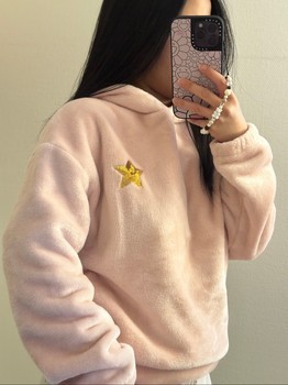 Firefly fleece hoodie with golden star detail at chest. Very warm and fluffy soft.