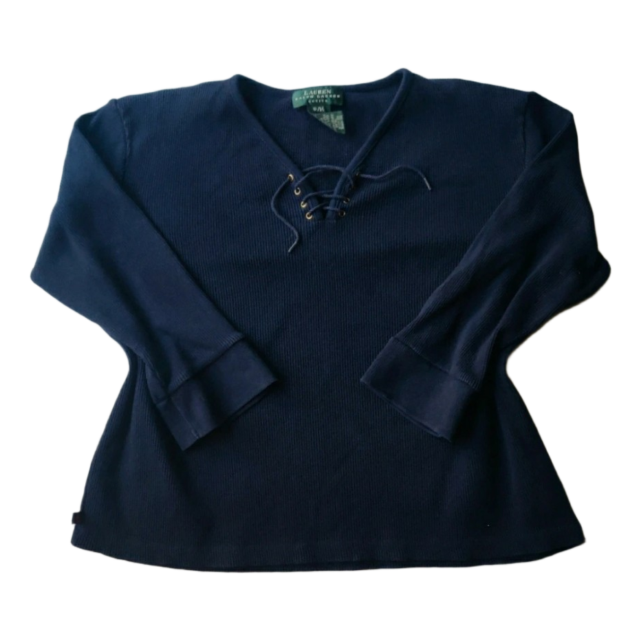 #RalphLauren #LaurenRalphLauren #Petite #Tummansininen #Nyöripaita #Ribattu #Nautical #OldMoney #Preppy #Y2K #Lyhytpaita #Designer #Puuvillapaita