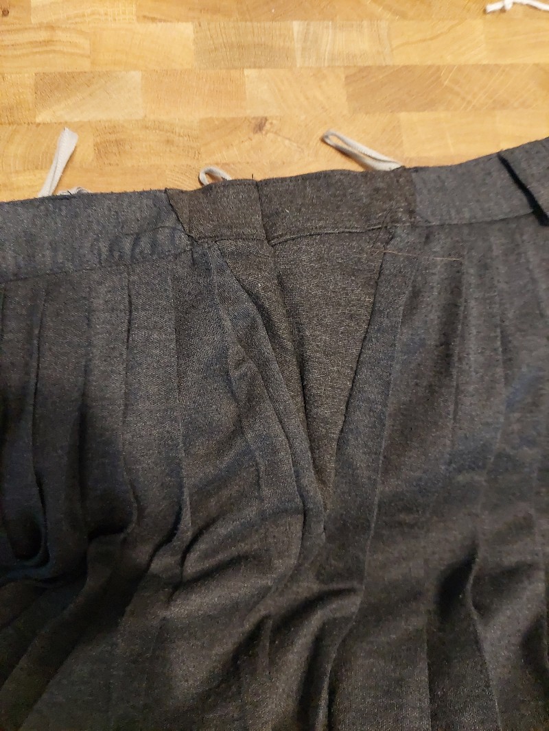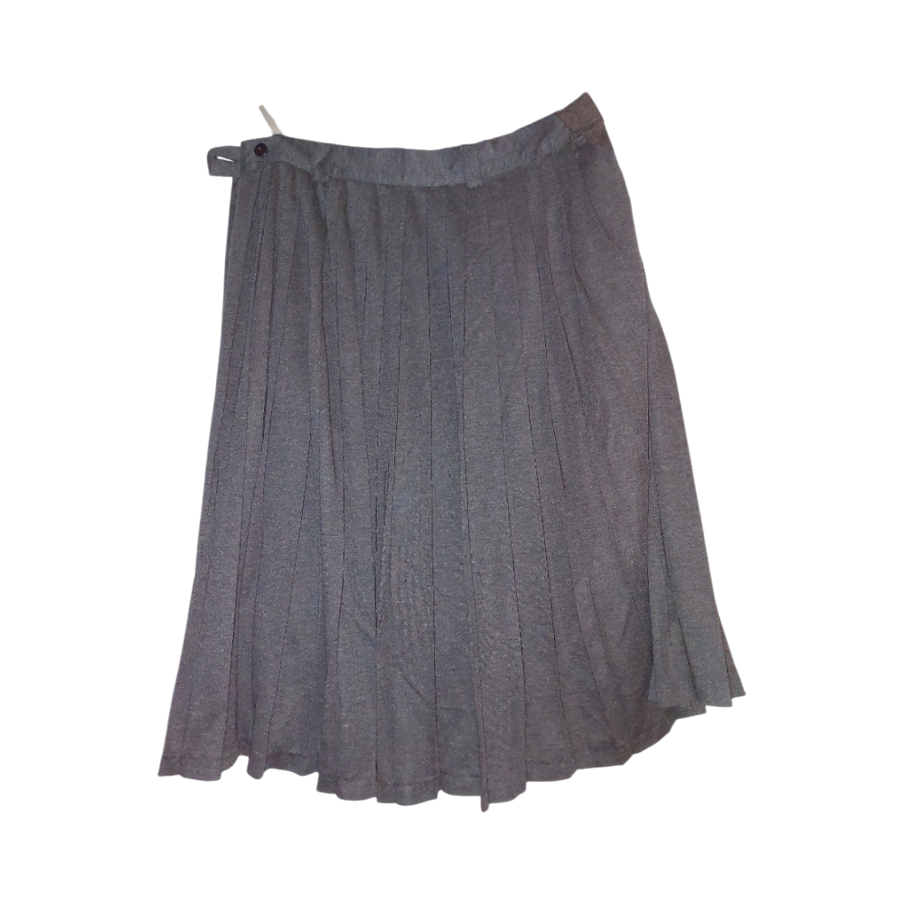 Knee-length pleated skirt with buttoned waistband, classic style. Vintage. DIY extension in the waist line. 75% polyester 25% modal, slight pilling in the fabric.