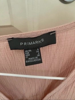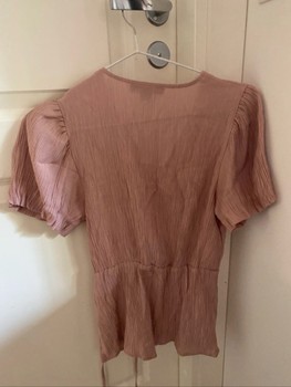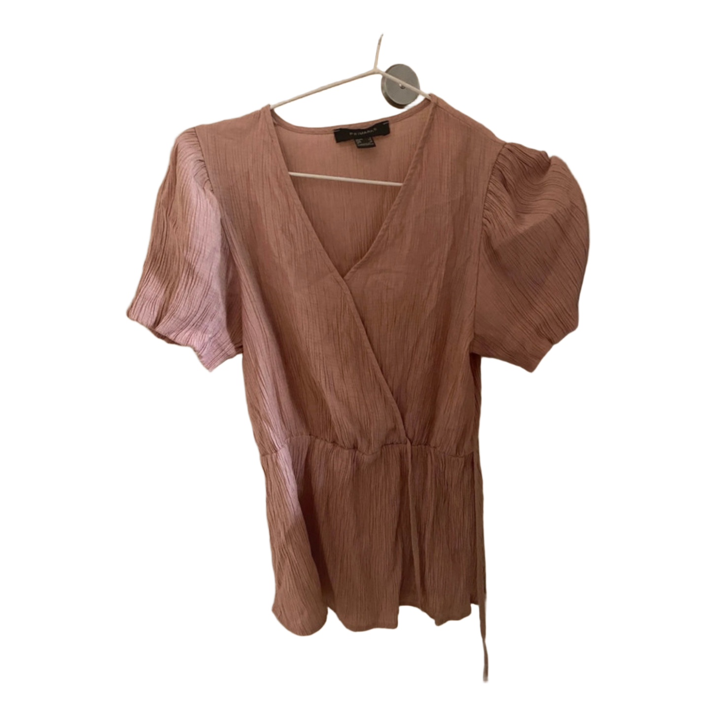 Light pink, wrinkled-texture Primark blouse. V-neck and puff sleeves. Size 34.