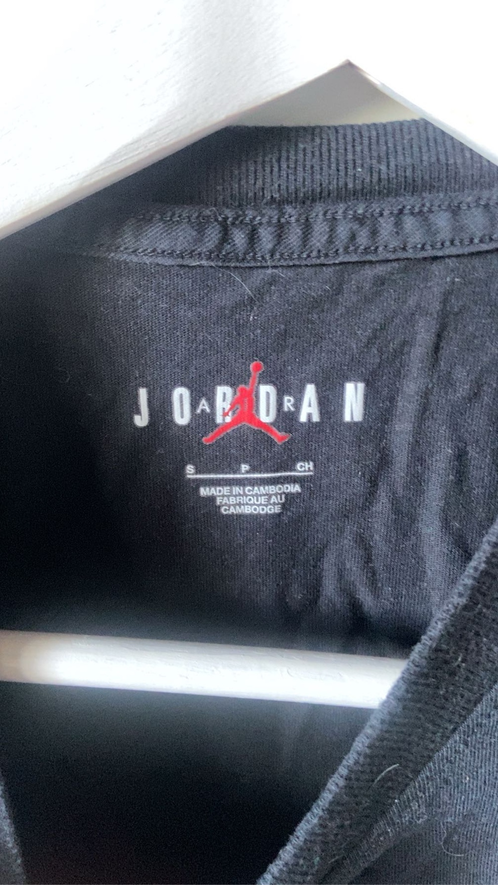 Black Jordan T-shirt with graphic pattern. Size S.