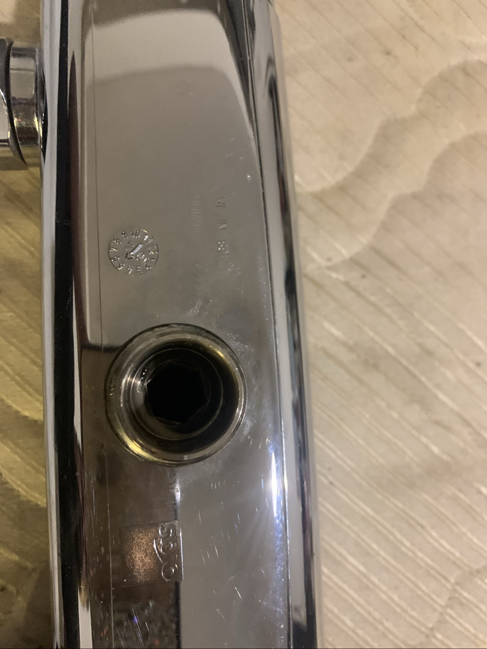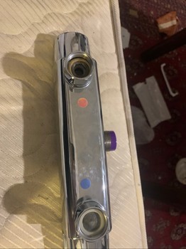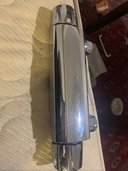Chrome-plated Oras Nova shower faucet with thermostat. Temperature control and clear markings.
