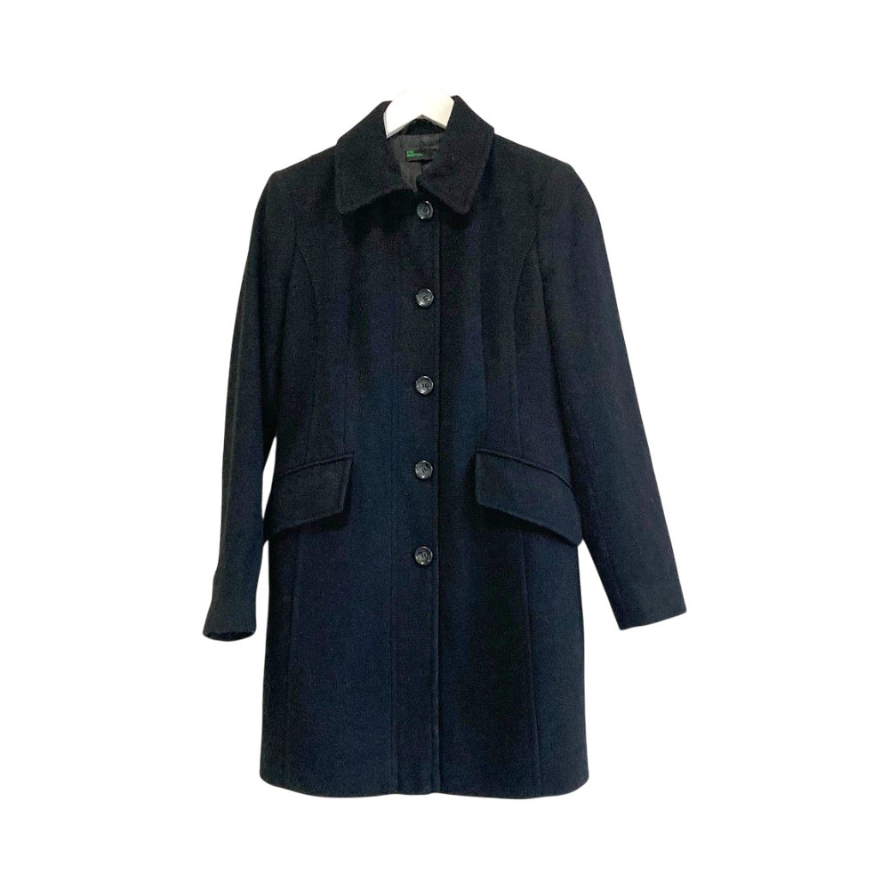 United Colors of Benetton Classic Black Wool Coat – EU 38 (fits S)