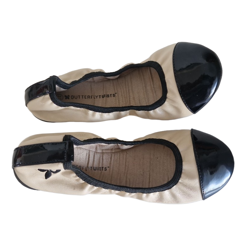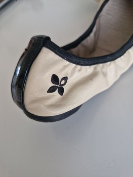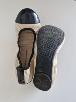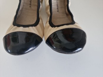 Beige-colored ballerinas with black details. Lightweight and flexible shoes. Almost like new, no signs of wear.