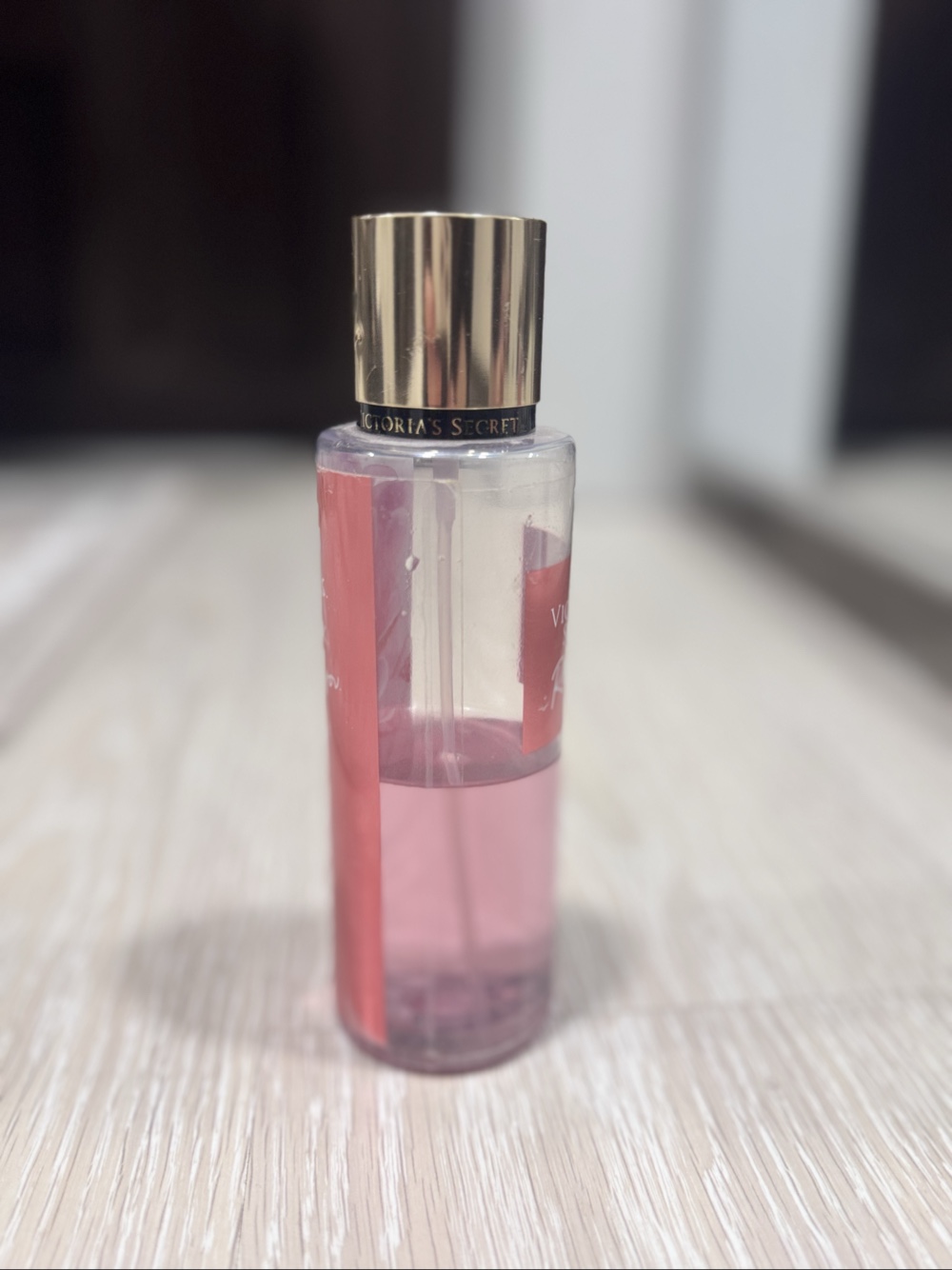 Victoria's Secret Romantic fragrance mist. A little less than half