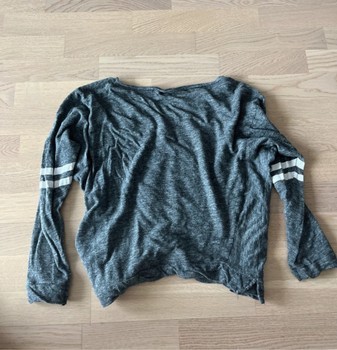Gray long-sleeved LSU Tigers shirt. Hem and sleeves have white stripe details.