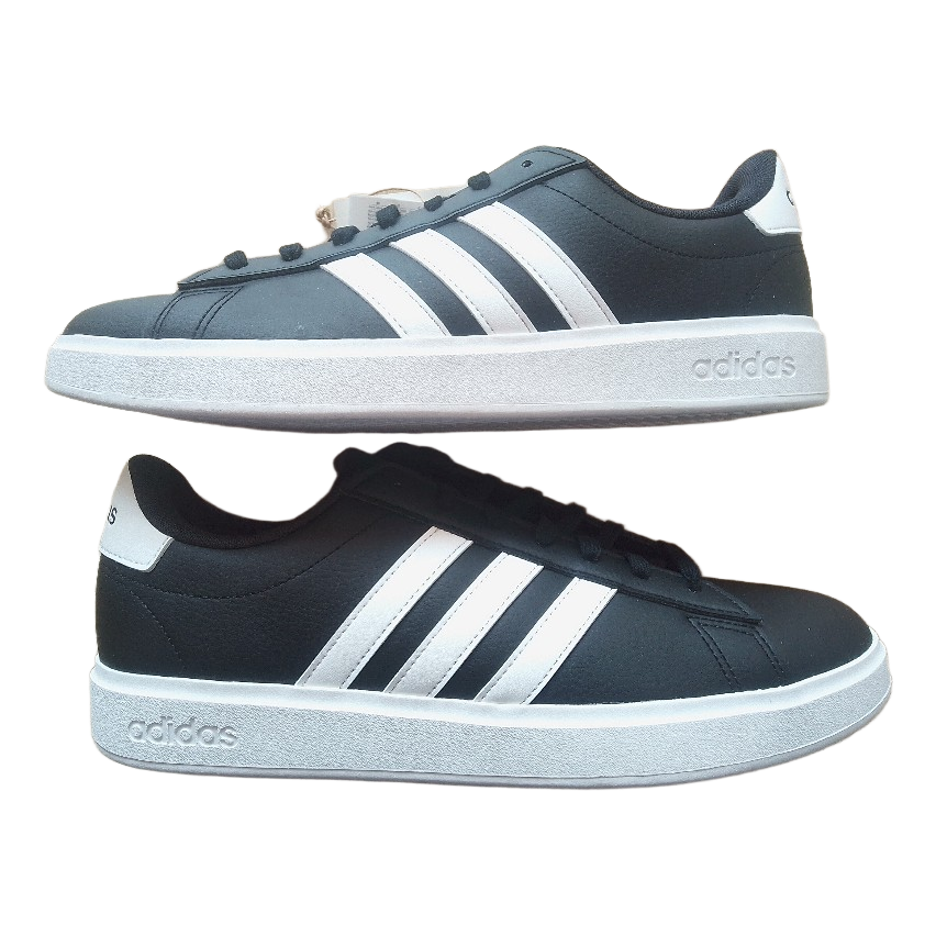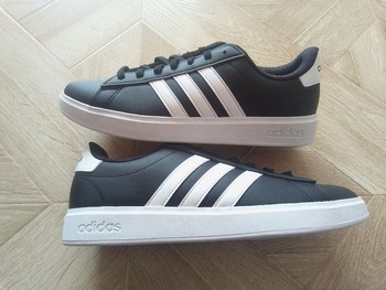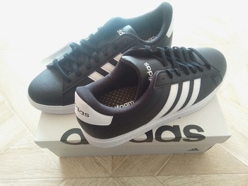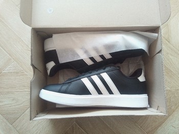 New black Adidas sneakers with white stripes. Cloudfoam insoles. Size 45