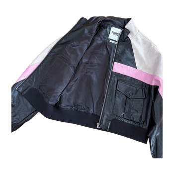 Short Essentiel Antwerp bomber jacket 💜 Size S and fits true to size. RRP €444, model name Enable patchwork jacket. Material polyurethane. Shoulder to hem approx 50, armpit to armpit approx 48