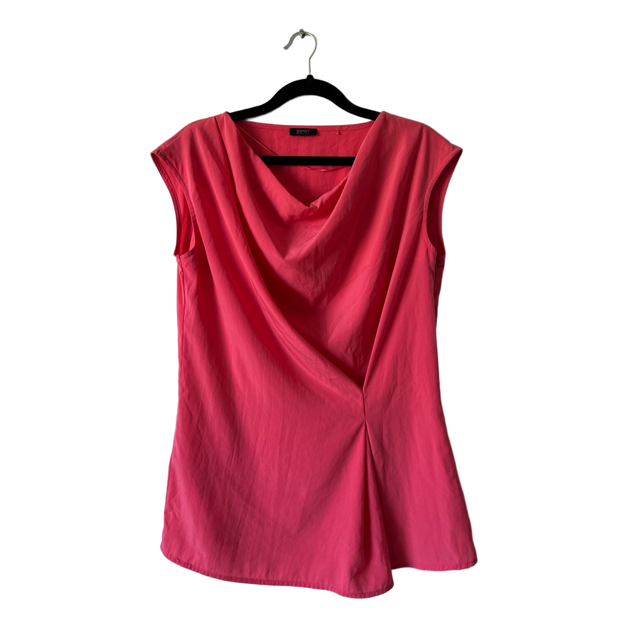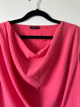 Pink sleeveless top with a cowl neckline and front pleat detail. Measurements (flat): Bust (pit to pit): approx. 43 cm (17 inches). Length: approx. 63 cm (25 inches).