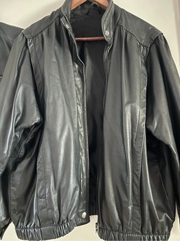 Black leather jackets, genuine leather. One larger model S-M-sized, the other oversize-XL-sized. Good condition, zippers work, no odors. Combined price.