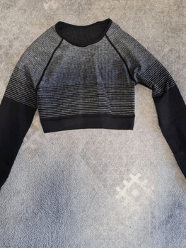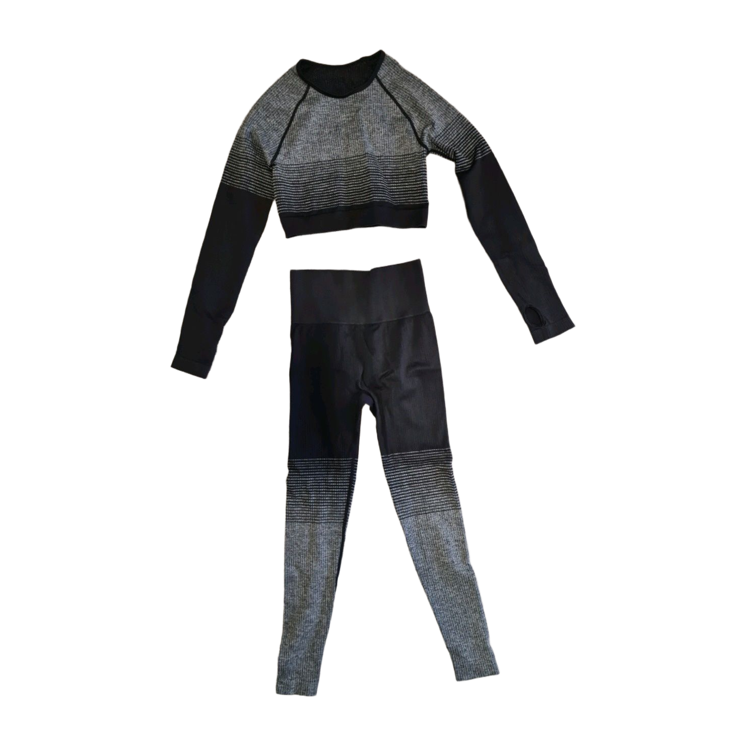 Workout outfit ordered from Shein, short long-sleeved top and long workout leggings, XS size (runs small)