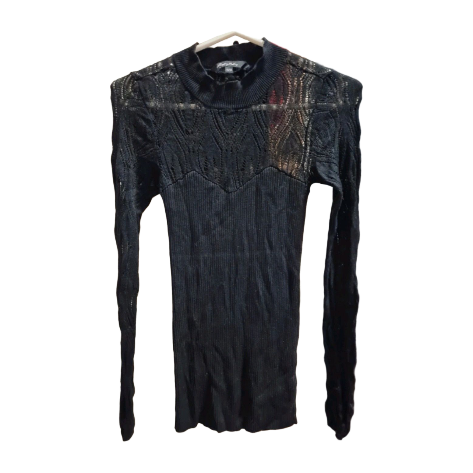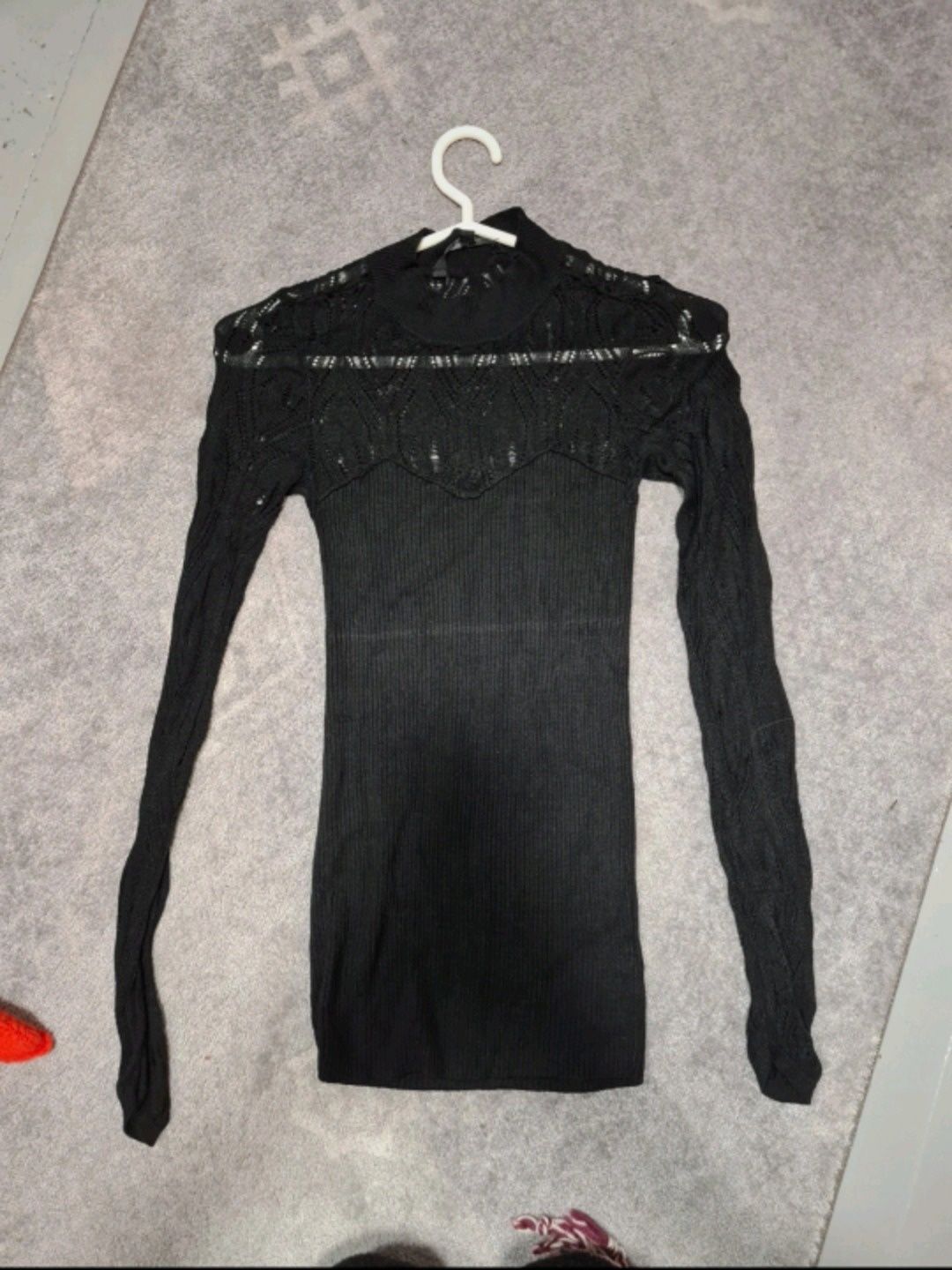 Knit top with the upper part and sleeves in a transparent lace pattern, XS