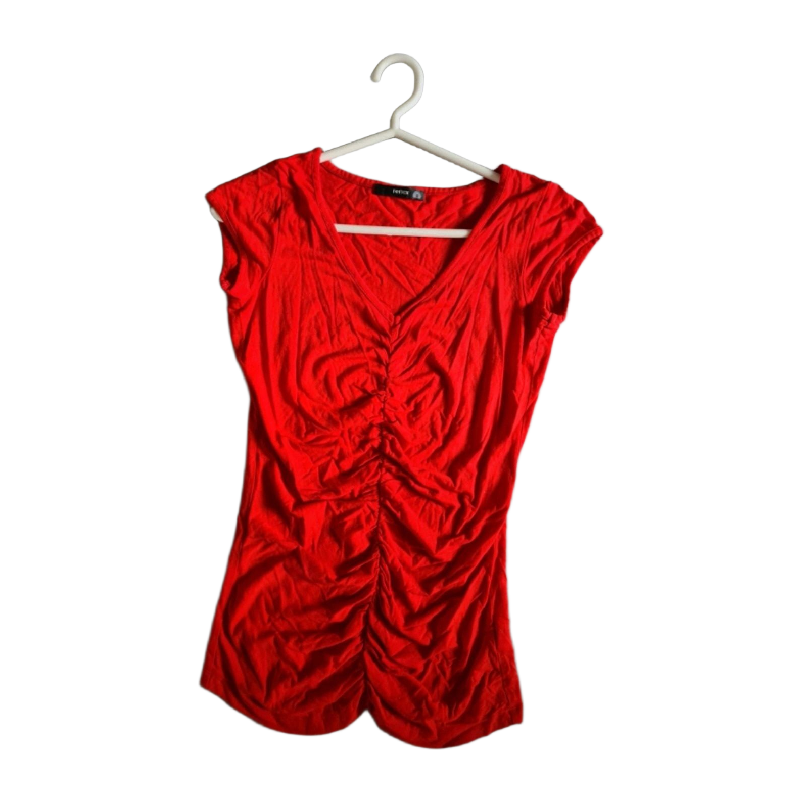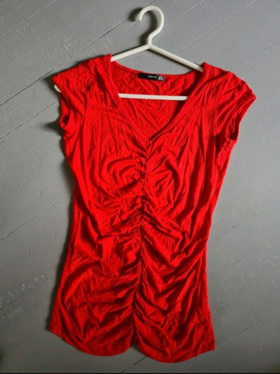 Red top/T-shirt, ruching at front, S