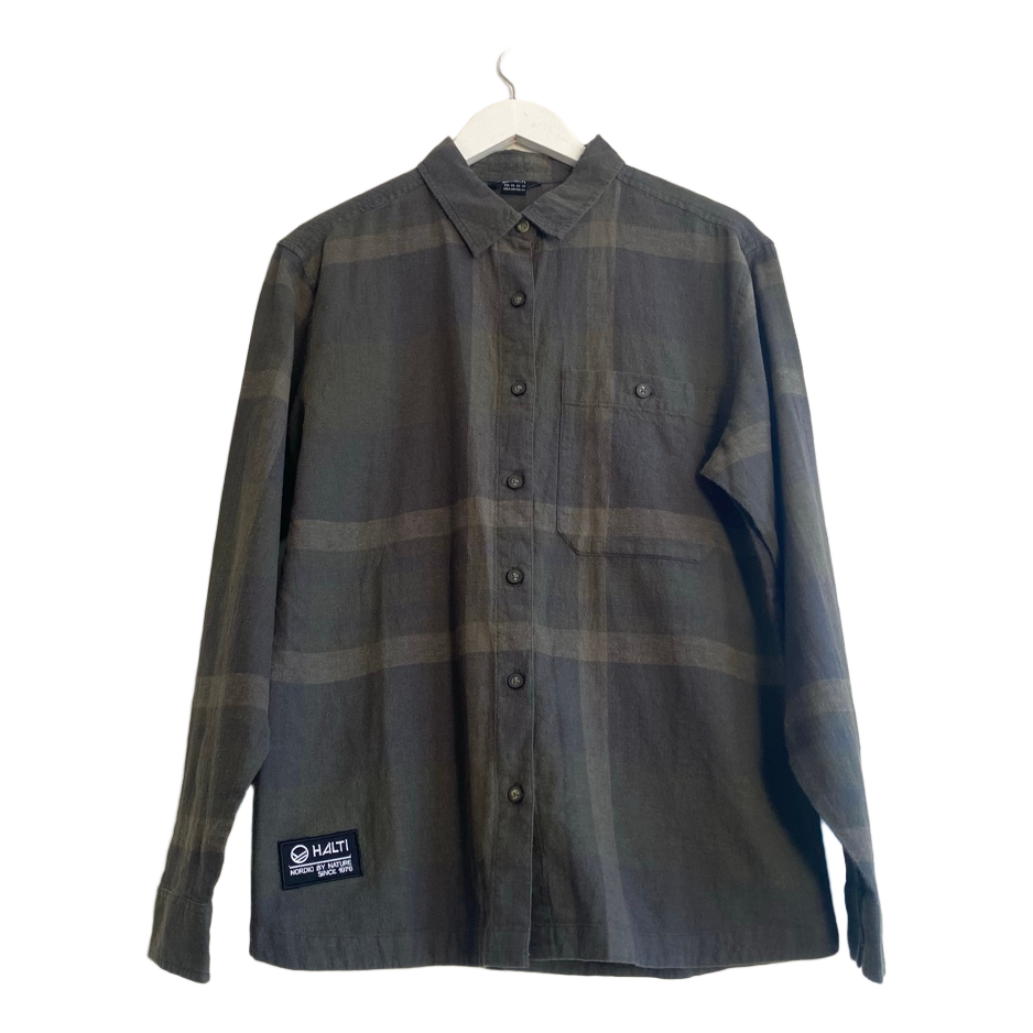 Halti, women’s shirt, blouse, hemp fabric, organic cotton, sustainable fashion, eco, outdoor, hiking, casual, minimalist, plaid, natural materials